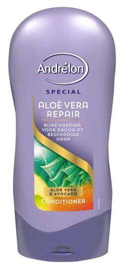 Andrélon Aloë Vera Repair Conditioner is speciaal ontwikkeld voor het herstel en de verzorging van droog en/of (zeer) beschadigd haar en voedt het haar intensief. De herstellende conditioner bevat plantaardige ontklittende bestanddelen. Deze lijn met een heerlijke frisse geur is verrijkt met aloë vera, avocado en jojoba-olie, ingrediënten die bekend staan om hun verzorgende, voedende eigenschappen. De verbeterde lichtgewicht conditioner dringt door tot in de kern van het haar en zorgt ervoor dat het haar van binnenuit gevoed en hersteld wordt waardoor je lokken weer sterk en krachtig aanvoelen. Dit terwijl andere oliën juist op het haar blijven liggen en hierdoor verzwarend kunnen werken. Bovendien zorgt de conditioner ervoor dat je haar na het wassen makkelijk doorkambaar is.