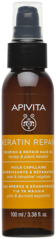De Apivita Keratin Repair Oil is een voedende en herstellende haarolie die droog en beschadigd haar intensief verzorgt. Dankzij plantaardige keratine, honing en natuurlijke oliën wordt je haar weer zacht, glanzend en soepel, terwijl het beschermd wordt tegen hitte en breuk.
