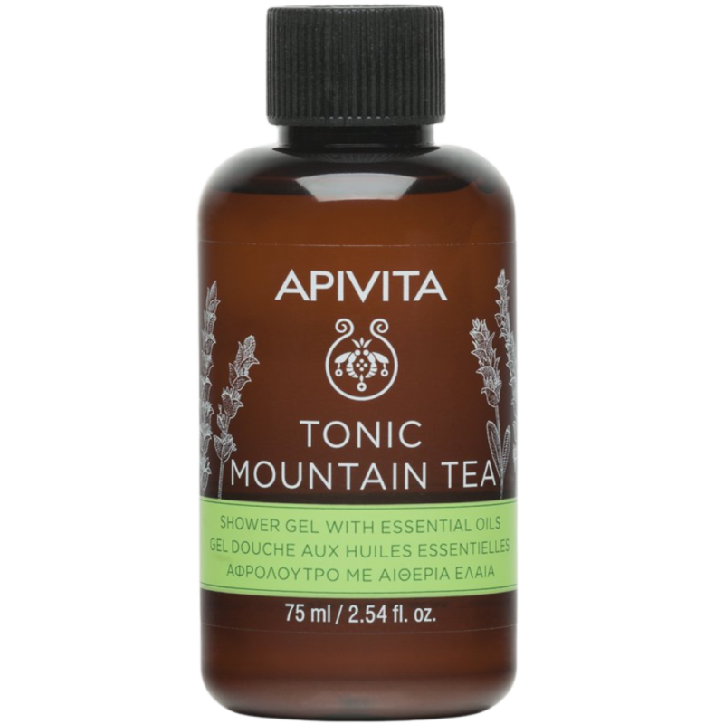 Apivita Tonic Mountain Tea Douchegel met Essentiële Oliën is een douchegel met essentiële olien. Tonic Mountain Tea is een jouchegel met essentiële oliën, geïnspireerd op de principes van de aromatherapie, die je huid zacht reinigt zonder haar uit te drogen en tegelijkertijd bescherming biedt tegen oxidatieve stress dankzij de Griekse bergthee. Het verbetert het humeur en laat je huid licht geparfumeerd achter. Gebruik het in de ochtend tijdens het douchen om de dag goed te beginnen, geschikt voor mannen en vrouwen. De infusie van een combinatie van 3 biologische sideritissoorten uit de biologische teelt van APIGEA (Sideritis Scardica, Sideritis Perfoliata, Sideritis Raiseri), heeft het water vervangen en draagt zo bij tot de antioxiderende en hydraterende werking van het product. Een rijke samenstelling met 88% natuurlijke ingrediënten.