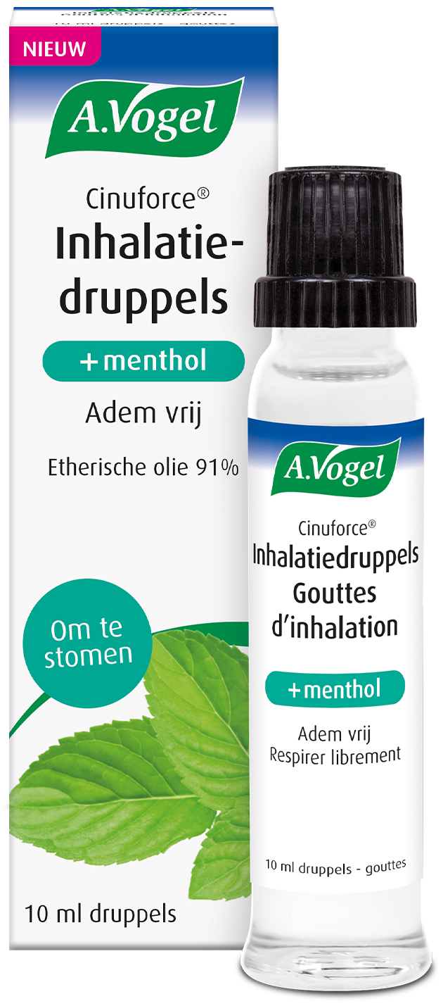 -10%A Vogel Cinuforce Inhalatiedruppels ondersteunt je luchtwegen en helpt om op een aangename, natuurlijke manier vrijer te ademen door je neus. Cinuforce Inhalatiedruppels zijn te gebruiken door te stomen, bijvoorbeeld onder de douche, zodat je weer vrijer kunt ademen.