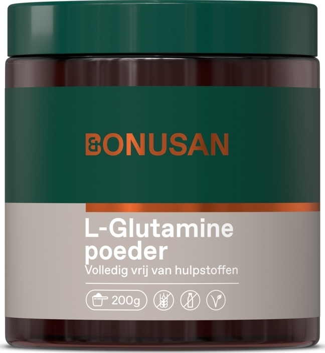 Bonusan L-Glutamine poeder is een handig te doseren glutamineproduct. Glutamine mag dan wel door ons lichaam aangemaakt worden, soms loopt de lichaamseigen productie achter de feiten aan. Je voeding aanvullen met een supplement biedt dan uitkomst om L-glutamineniveaus op peil te houden.