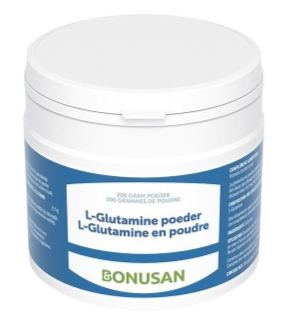 Bonusan L-Glutaminepoeder is een handig te doseren glutamineproduct. Glutamine mag dan wel door ons lichaam aangemaakt worden, soms loopt de lichaamseigen productie achter de feiten aan. Je voeding aanvullen met een supplement biedt dan uitkomst om L-glutamineniveaus op peil te houden.