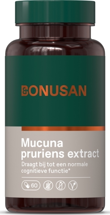 Bonusan Mucuna pruriens is een voedingssupplement op basis van Mucuna pruriens (fluweelboon). Mucuna pruriens (fluweelboon) staat bekend om de inhoudsstof levodopa, oftewel L-dopa. L-dopa is de voorloperstof van dopamine. Mucuna pruriens speelt een belangrijke rol in het functioneren van zenuwen en bij geestelijke inspanning en activiteit*.