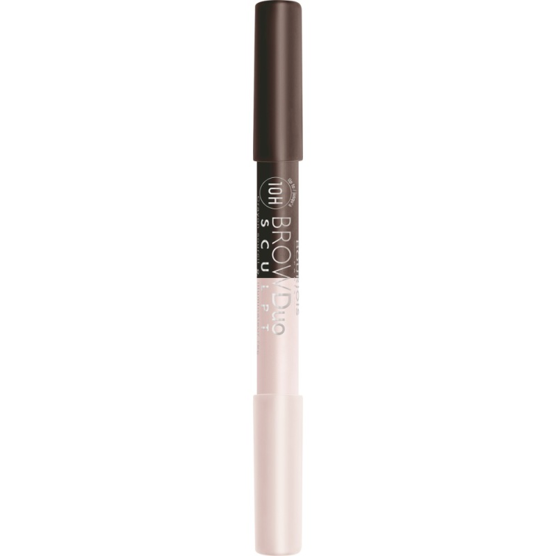 De Bourjois wenkbrauwpotlood Brow Duo Sculpt brown 23 is een highliter en wenkbrauwenpotlood in een. Het helpt met het creëren van de perfecte look! Het potlood is om je wenkbrauwen te accentueren en highliter zorgt er voor dat ze er uit springen. De Brow Duo Sculpt blijft tot wel 10 uur zitten!