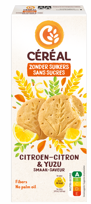 Céréal Koek Citroen Yuzu is een lekker tussendoortje zonder suiker. Yuzu is een citrusvrucht uit Japan, geliefd om zijn frisse en citroenachtige smaak. De heerlijke smaak van citroen en yuzu met zandkoekje is onweerstaanbaar. Dankzij de handige verpakking neem je Céréal Koek Citroen Yuzu gemakkelijk overal mee naartoe.