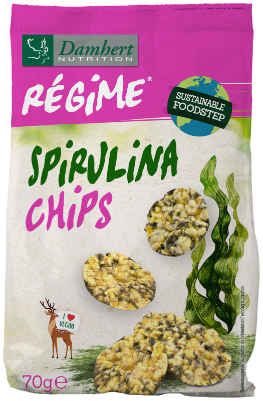Damhert Spirulina Chips zijn chips van maïs en spirulina. Bij Damhert denken we samen aan de toekomst en aan het dierenwelzijn. 'Love our planet' is de boodschap die we met de 'Spirulina chips' willen overbrengen. Spirulina is een microscopisch kleine spiraalvormige, blauw-groene alg met een waanzinnig voedingsprofiel. Spirulina is één van de rijkste bronnen van proteïnen. Het eiwitgehalte bedraagt ongeveer 60-70%. Hierdoor is het uitermate geschikt voor vegetariërs. Go green en geniet van deze snack. Wat goed is voor jezelf, is goed voor onze planeet!