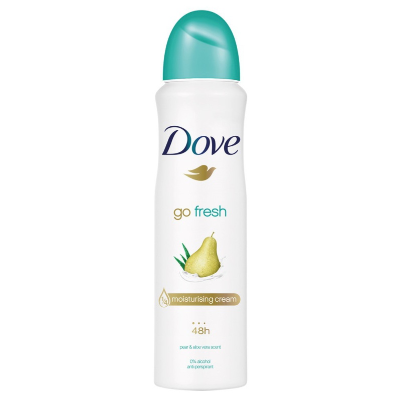 De Dove Go Fresh Pear & Aloe Vera Deodorant Spray brengt je een uniek fris gevoel. De heerlijke frisse, lichtzoete geur van peer en het verzorgende element van aloë vera zorgen voor een extra energieke start van je dag.Dove Go Fresh Pear & Aloe Vera Deodorant Spay beschermt en verfrist vanaf de eerste spray. Met 48 uur bescherming om je genoeg zelfvertrouwen te geven gedurende de hele dag.