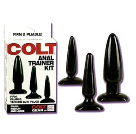 Met de Colt Anal Trainer Kit maak je jezelf of je partner op een speelse wijze klaar voor anale seks. De box bestaat uit drie verschillende buttplugs, variërend in grootte, zodat je in stappen kunt overgaan naar een steeds grotere buttplug. De plugs zijn zwart van kleur en in de diameter 2,4 centimeter tot 4,3 centimeter. Het is de perfecte oefenkit waar je nog lang veel plezier aan zal beleven!