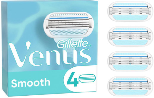 Gillette Venus smooth mesjes 4 stuks zijn voorzien van een lubrastrip. Hierdoor glijdt het scheermes comfortabel over de huid. Met ronde beschermkussens.