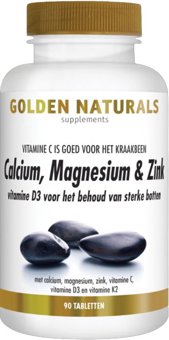 Calcium, Magnesium & Zink is een samenstelling van calcium (citraat), magnesium (bisglycinaat), zink (bisglycinaat), vitamine C, vitamine D3 en vitamine K2 (in de vorm menachinon-7).