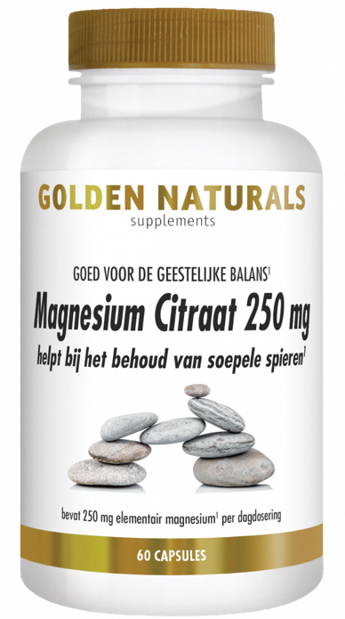 De Golden Naturals Magnesium Citraat 250mg Capsules bevat 250mg elementaire magnesium per dagdosering en is gebonden aan een aminozuur. Hierdoor is de magnesium beter herkenbaar voor het lichaam en wordt het beter opgenomen. Tevens is organisch gebonden magnesiumcitraat licht verteerbaar. Daarnaast is de elementaire waarde het werkelijke aantal miligram dat je binnen krijgt en is het percentage magnesium dat werkelijk door het lichaam opgenomen wordt zeer hoog.