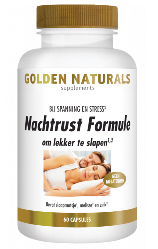 -25%Goed slapen is letterlijk van levensbelang. De voordelen van een goede en gezonde nachtrust zijn oneindig. Denk aan scherpte en energie overdag, een vrolijker gemoed en een betere weerstand. Helaas is een goede nachtrust niet altijd voor iedereen vanzelfsprekend. Kun je wel wat steun gebruiken om in slaap te komen of te ontspannen? Golden Naturals Nachtrust Formule is een effectieve mix van kruiden(extracten) zoals slaapmutsje en citroenmelisse-extract die helpen om lekker te slapen en een natuurlijke gezonde slaap bevorderen. Zink ondersteunt bij spanning en stress. Golden Naturals Nachtrust Formule is 100% melatonine-vrij, bevat geen allergenen en mag in combinatie met geneesmiddelen worden gebruikt.