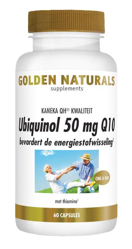 Golden Naturals Ubiquinol 50 mg Q10 bevat 50 milligram ubiquinol, de biologisch meest actieve vorm van Q10. Ubiquinol is, in tegenstelling tot geoxideerde Q10, ubiquinon, een kant-en-klare vorm die veel beter door het lichaam wordt opgenomen.