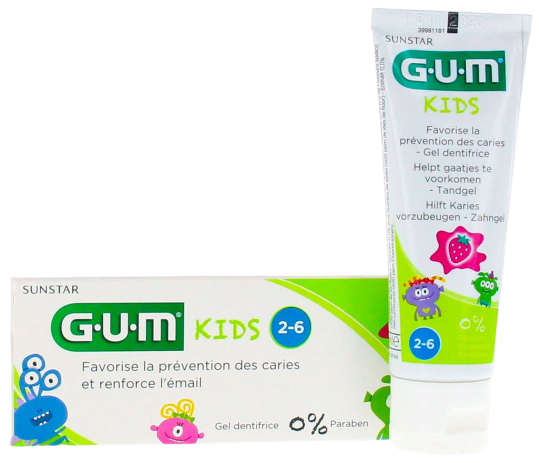 Gum Kids Tandpasta Aardbei beschermt de tanden tegen gaatjes, versterkt het tandglazuur en is zacht voor het tandvlees en het melkgebit van kinderen. Bovendien heeft deze tandpasta een aangename aardbeiensmaak.
