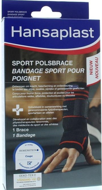 De Hansaplast Sport Polsbrace is een extra ondersteunende band voor gecontroleerde compressie. Ontworpen om stevigheid, bescherming en ondersteuning te geven aan stijve, zwakke, pijnlijke of geblesseerde polsgewrichten. . De brace helpt ook om een nieuwe blessure te voorkomen.