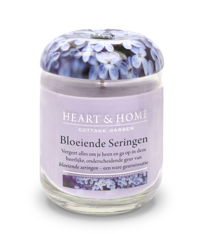 Heart & Home Grote Geurkaars - Bloeiende Seringen is een geurkaars in glas. De kaars oogt niet alleen mooi, maar ruikt ook voortreffelijk. Geniet optimaal, gedurende de 70 branduren, van de heerlijke bloemen geur van bloeiende seringen. De Large Geurkaars - Bloeiende Seringen behoort tot de 'Cottage Garden' kaarsen.