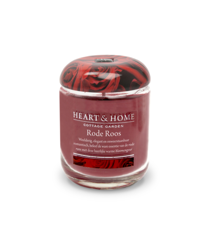 Heart & Home Middelgrote Pot - Rode Roos is een mooie geurkaars in glas met een romantische geur van rode rozen. Laat deze heerlijke, onweerstaanbare geur door het huis gaan en geniet van de ware essentie van deze prachtige bloem. De Middelgrote Pot - Rode Roos behoort tot de 'Cottage Garden' kaarsen.