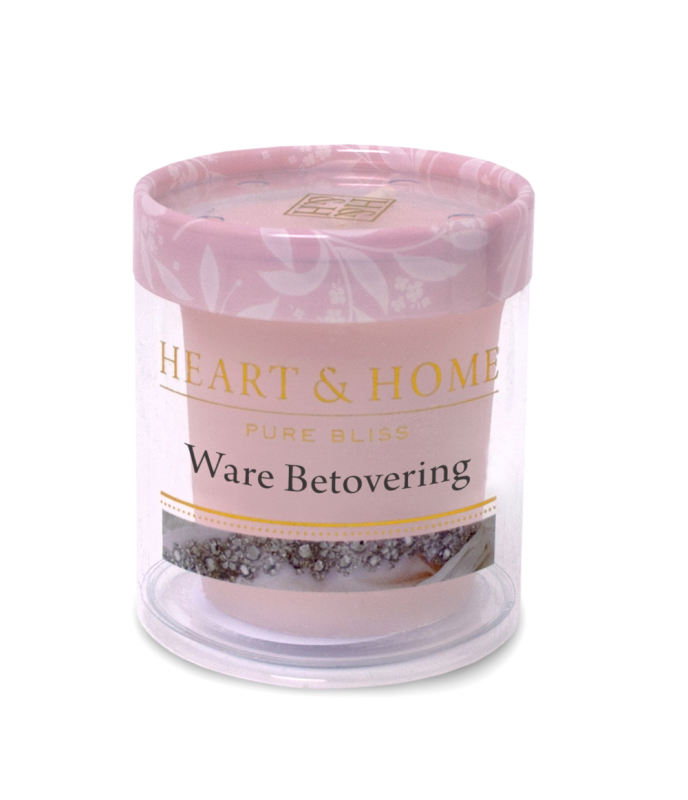 Heart & Home Votive - Ware Betovering is een romantische geurkaars met een zachte, sensueel warme geur. Een romantische geur die staat voor een gevoel van warmte en liefde. Geniet van deze milde geur gedurende de 15 branduren. De kaars zal de aroma's verspreiden door de ruimte waardoor je jezelf in romantische sferen zult begeven. Het Ware Betovering Votive Kaarsje behoort tot de 'Pure Bliss' lijn.