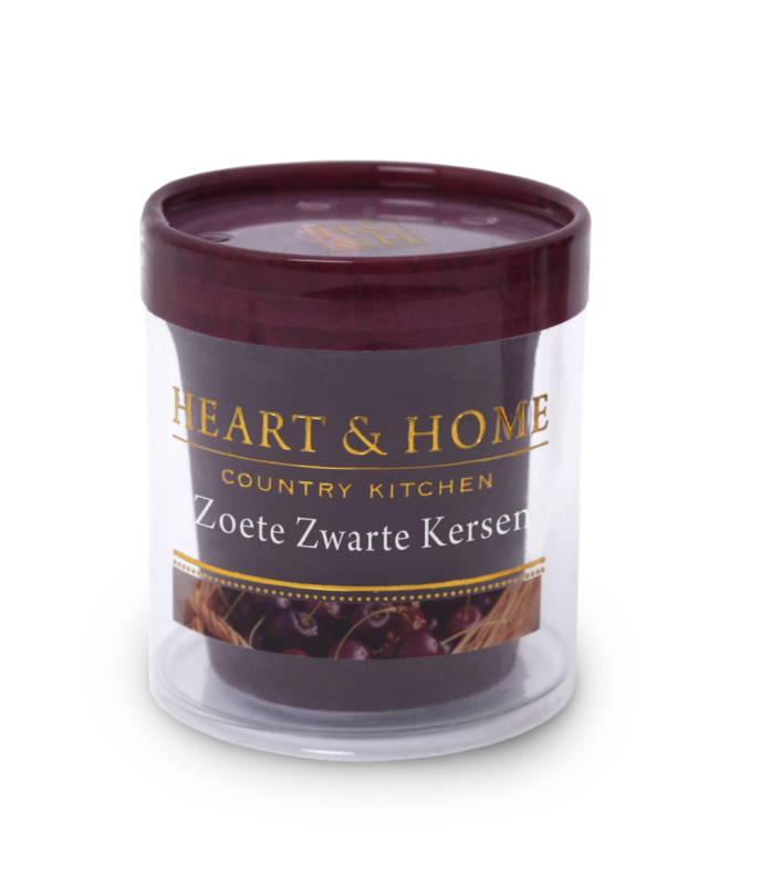Heart & Home Votive - Zoete Zwarte Kers is een heerlijke geurkaars met de friszoete geur van rijpe zwarte kersen. Waan je in een tuin vol kersenbomen en geniet van deze heerlijk zoete geur. De kaars brandt tot wel 15 uur en zal de geur door heel de kamer verspreiden. Het Zoete Zwarte Kersen Votive Kaarsje behoort tot de 'Country Kitchen' lijn.