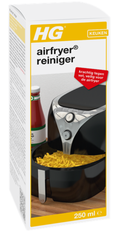 HG airfryer ® reiniger is een uniek, gepatenteerd, uiterst krachtig product voor het reinigen van de airfryer. Zeer hard voor de aanslag maar uiterst mild voor de airfryer waardoor deze tijdens het schoonmaken niet wordt aangetast of beschadigd.
