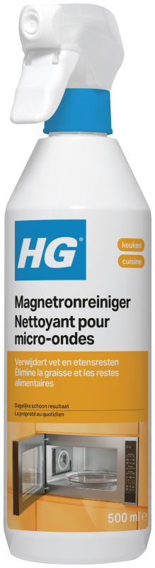 -10%HG Magnetronreiniger verwijdert eenvoudig vet en aangekoekte etensresten in magnetrons en combi magnetrons. Deze handige en krachtige alledag magnetron schoonmaker is veilig te gebruiken op alle materialen die in (combi) magnetrons gebruikt worden. Een magnetron schoonmaken was voorheen een vervelende klus, maar dit is nu voorbij met de effectieve magnetronreiniger van HG.