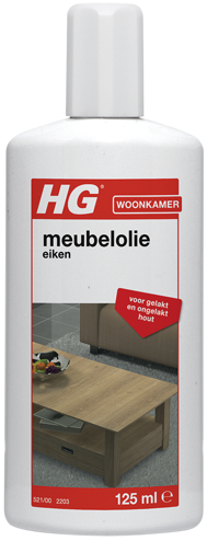 De HG Meubelolie Eiken is speciaal ontwikkeld om meubels van eiken, mahonie of kersen goed te voeden en te beschermen. Wanneer je regelmatig HG meubelolie gebruikt verfraait het meubel niet alleen, maar blijft het ook in goede conditie. HG heeft drie unieke typen verzorgende meubeloliën ontwikkeld: een meubelolie voor eiken, mahonie en kersen, een meubelolie voor noten, pallisander en wengé en een meubelolie voor teak.