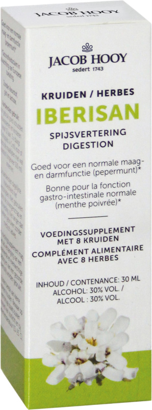 Jacob Hooy Iberisan Kruiden draagt bij een normale werking van de maag en darmfunctie. Dit voedingssupplement bevat 8 verschillende kruiden en heeft een pepermunt smaak.