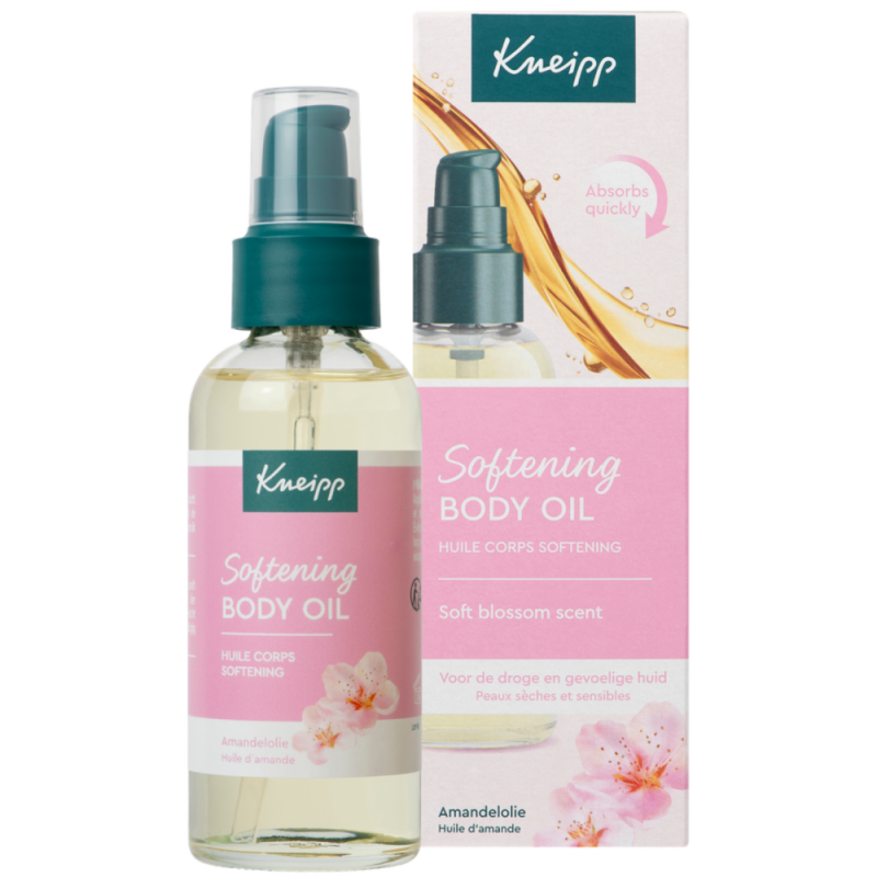 Kneipp Body Oil Soft Skin geniet van een intensief voedende en herstellende werking van Kneipp® huidolie Soft Skin. De rijke Kneipp® Soft Skin huidolie amandelbloesem versterkt de huidbarrière, verbetert de elasticiteit van je huid en beschermt tegen schadelijke invloeden van buitenaf. Met een hoog gehalte aan hoogwaardige amandelolie, is deze olie zeer geschikt voor de gevoelige huid. Deze huidolie heeft een herstellende werking en geeft de droge en gevoelige huid een glad, zacht gevoel. Het natuurlijke verzorgende effect wordt compleet door de celbeschermende combinatie van vitamine E, waardevolle arganolie en milde zonnebloemolie. Dit product is geschikt voor alle huidtypen - in het bijzonder de droge en gevoelige huid.