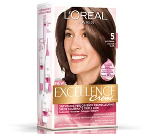 L'Oréal Paris Excellence Crème Lichtbruin 5 geeft het haar een volle, egale kleur. De permanente crème kleuring zorgt voor een optimale dekking van de grijze haren, en laat een prachtige lichtbruine kleur achter op het haar. Ook zorgt de permanente crème voor een drievoudige bescherming van het haar, en door het toegevoegde Excellence serum worden de beschadigde haren verzorgd. Hierdoor worden vooral de punten van het haar voorbereid op het kleuren. Hierdoor wordt het haar zachter, gladder en krijgt het een mooie glans.