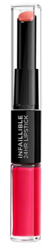 L'Oréal Paris Lipstick Infaillible 701 Captivated is een duo lippenstift met een intens kleurresultaat. Het is een waterproof lipstick die tot 24 uur lang blijft zitten. De formule is intens gepigmenteerd en geeft een glanzend kleurresultaat, door de nieuwe color boosting balm worden je lippen ook verzorgd. De lippenstift heeft een roze kleur.