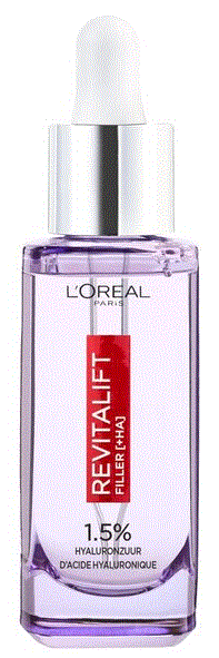 L'Oréal Paris Revitalift Filler Anti-Rimpel Serum 1.5% Hyaluronzuur vermindert rimpels effectief met deze hoge concentratie hyaluronzuur. Door de combinatie van micro en macro hyaluronzuur hervindt de huid haar veerkracht en wordt zij optimaal gehydrateerd.