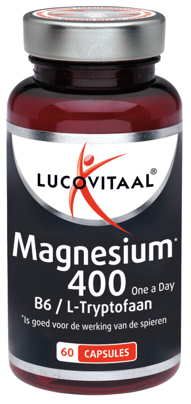 Lucovitaal Magnesium 400mg L-Tryptofaan bevat 400 mg magnesium, L-tryptofaan en vitamine B6. De capsules zijn perfect voor mensen met een lusteloos en vermoeid gevoel. De one-a-day formule is goed voor de werking van spieren en helpt vermoeidheid te verminderen.