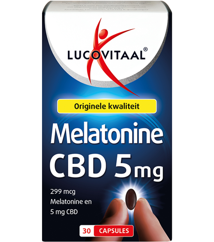 Lucovitaal Melatonine CBD 5 MG 30 Capsules bevat 299 mcg Melatonine en 5 mg CBD per capsule.