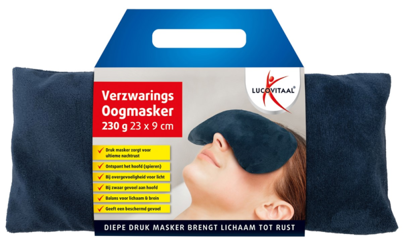Lucovitaal Verzwaringsoogmasker helpt onder andere om hyperactieve personen te helpen ontspannen en te zorgen voor een betere nachtrust. Het masker is een hulpmiddel ontworpen om te beschermen tegen licht en te zorgen voor drukpuntstimulatie. Een verzwaringsoogmasker geeft geborgenheid, een veilig gevoel (bij angst) en kalmeert bij onrustigheid. Ook geschikt voor een ontspanningsmoment of tijdens meditatie. Daarnaast is het verzwaringsoogmasker verzwaard met hypoallergene korreltjes en stimuleert het gezicht puntsgewijs. Deze druk stimuleert een gewaarwording van aanraking van spieren en geeft diepe ontspanning. De uitwasbare hoes is ook nog eens door de uitzonderlijke pluche/katoen kwaliteit heerlijk zacht.