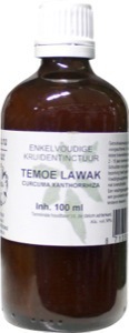 Enkelvoudige kruidentinctuur gemaakt met 100 gram gedroogde wortelstokken van Curcuma xanthorrhiza / Temoe lawak.