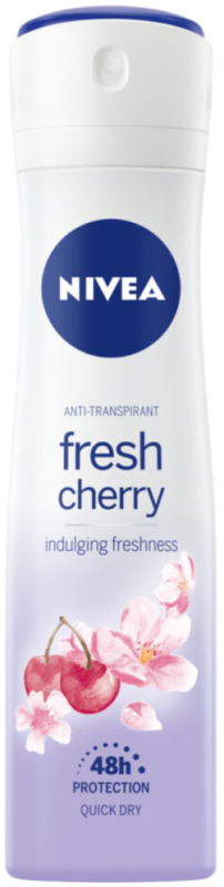 Nivea Fresh Cherry Anti-Transpirant biedt 48 uur betrouwbare bescherming tegen transpiratie en nare geurtjes. Bovendien zorgt de deodorant voor een droog en schoon huidgevoel. De deo heeft de heerlijk, fruitige geur van kersen.