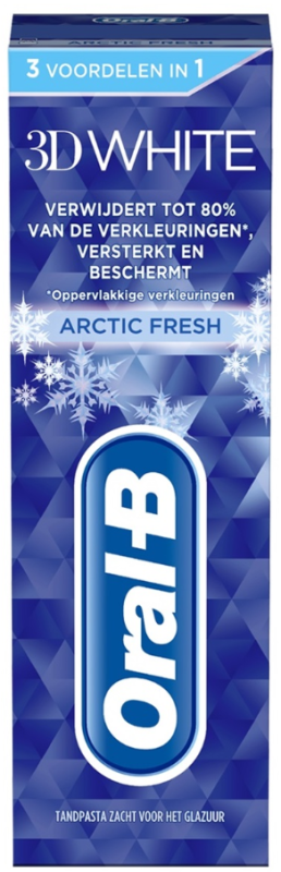 Bij Drogist.nl kun je alles van Oral-B bestellen tegen lage prijzen. Bestel online Oral-B Tandpasta 3D White Arctic Fresh 75 Ml. uit de categorie witte tanden/whitening voor 23:00 vandaag, dan heeft u uw bestelling de volgende werkdag in huis, mits voorradig.