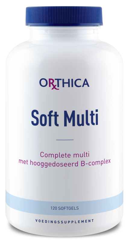 Orthica Soft Multi is een complete multivitamine met een hooggedoseerd vitamine B-complex. Het is vooral geschikt bij geestelijke inspanning en moeheid. Door de gladde buitenkant van de softgels zijn ze makkelijk in te slikken.