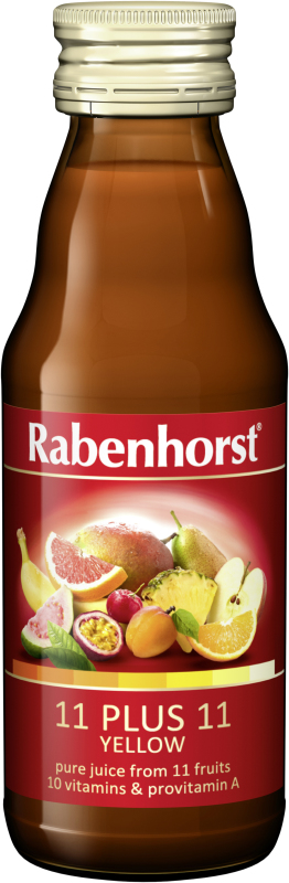 De Rabenhorst Multivruchtensap 11 Plus 11 Mini is een multivruchtensap gemaakt van puur sap of pure puree van 11 verschillende fruitsoorten. De 11 soorten zijn van de hoogste kwalititeit en zijn qua smaak goed op elkaar afestemd. De multivruchtensap van Rabenhorst is niet alleen een heerlijke fruitsensatie, maar levert ook nog een bijdrage aan de dagelijkse aanbevolen voedingsstoffen. Dit sap bevat namelijk ook nog 10 vitaminen en pro-vitamine A, een vitamine dat in het lichaam naar vitamine A wordt omgezet.