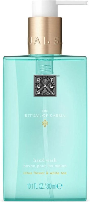 Rituals The Ritual of Karma Hand Wash is een handzeep van Rituals uit de collectie The Ritual of Karma die je handen op milde wijze reinigt en verzorgt. De zeep heeft een heerlijke geur en zorgt voor een moment van ontspanning tijdens het wassen van je handen. De formule is verrijkt met heilige lotus en biologische witte thee, waardoor je handen zijdezacht aanvoelen na gebruik. Lotusbloem staat bekend om zijn verzachtende en verzorgende eigenschappen, terwijl witte thee zorgt voor een frisse, bloemige geur. Samen hydrateren en kalmeren ze je huid, waardoor deze zacht, stralend en verfrist aanvoelt.