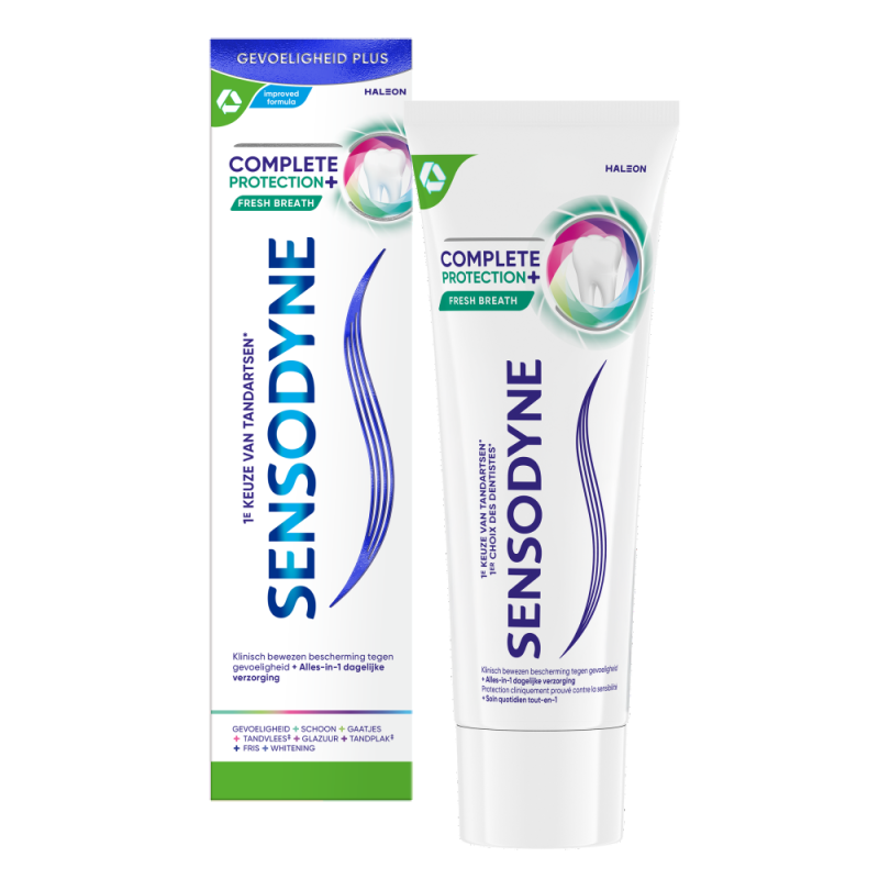 Sensodyne Complete Protection Fresh Breath bevat de Stannous Fluoride formule en is speciaal ontwikkeld om bij tweemaal daags poetsen gevoelige tanden te helpen voorzien in alles wat ze nodig hebben. De formule helpt te beschermen tegen tandplak en gezond tandvlees te behouden. 7 voordelen in één complete tandpasta: