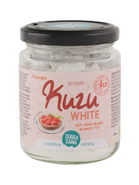 Terrasana Kuzu Wit Eko is een plantaardig, effectief bindmiddel dat wordt gemaakt van het zetmeel van de kuzuplant. Het wordt in Japan veel gebruikt voor soepen, sauzen en (warme) desserts. Het fijne aan kuzu is dat het de smaak in een gerecht niet aantast. In tegenstelling tot maïzena is kuzu ook goed te gebruiken in zure gerechten. Bovendien is het glutenvrij én veganistisch! Witte kuzu wordt gewassen en gefilterd, waardoor de smaak neutraal en de bindkrachtigheid iets krachtiger is dan van grijze kuzu.