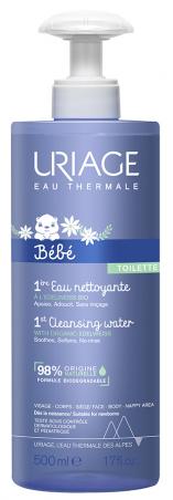 Uriage Reinigingswater is subtiel geparfumeerd water reinigt zachtjes en verwijdert op subtiele wijze vuil en onzuiverheden. De natuurlijke complexe formule [Uriage Thermal Water + biologische Edelweiss] kalmeert, verzacht en beschermt de gevoelige huid van uw baby.98% ingrediënten van natuurlijke oorsprong Biologisch afbreekbare formule volgens standaard OCDE301F / OECD301F Complex [Uriage Thermaal Water + biologische Edelweiss] Zonder zeep fysiologische pH Getest onder pediatrische controleMaakt de huid zacht, gekalmeerd Iconisch parfumGebruikGebruik het reinigingswater op een wattenschijfje om onzuiverheden te verwijderen. Droog voorzichtig, zonder te wrijven. IngrediëntenUriage thermal spring water, Aqua, glycerin, benzyl alcohol, poloxamer 184, PPG-26 buteth-26, PEG-80 glyceryl cocoate, PEG-40 hydrogenated castor oil, polyaminopropyl biguanide, fragance, citric acid, Aloe barbadensis.