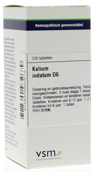 De Vsm Kalium Iodatum D6 Tabletten zijn een homeopatisch geneesmiddel.