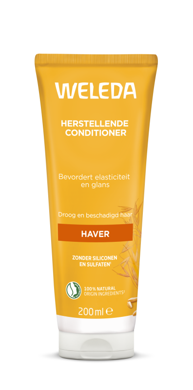 De Weleda Haver Herstellende Conditioner voedt en hydrateert droog en beschadigd haar en zorgt ervoor dat het opnieuw natuurlijk zacht en glad wordt. De formule die samengesteld uit biologische kokos- en jojoba-olie en extracten van biologische heemst en haver. Deze samenstelling zorgt ervoor dat de haarvezels hun structuur opnieuw terug krijgen, en dat je haar meer elasitciteit, kracht en glans krijgt.