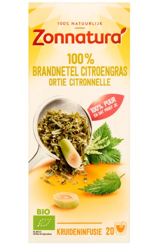 Zonnatura Brandnetel Citroengras Biologisch is een 100% zuiverende brandnetel thee met een vleugje citroengras.