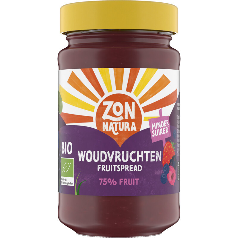 Zonnatura Fruitspread Woudvruchten heeft de pure smaak van fruit. De woudvruchten komen van biologische velden. Daar krijgen ze alle tijd om rustig in de zon te rijpen. Bovendien is er alleen gebruik gemaakt van 100% natuurlijke ingrediënten, waardoor de heerlijk zoet-zure smaak van woudvruchten behouden blijft. Onze fruitspread woudvruchten bevat maar liefst 75g vruchten per 100g. Het mooiste is nog, in deze jam zit dus meer fruit maar minder suiker! Dat proef je!