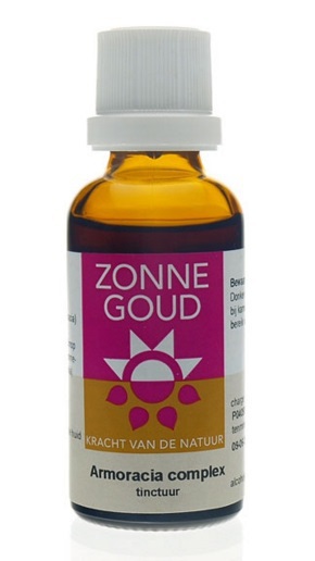 Het Zonnegoud Armoracia Complex bevat onder andere extract uit Mierikswortel. Mierikswortel heeft een ontstekingsoplossende werking en is daardoor goed voor de luchtwegen. Door de sterke en scherpe eigenschappen is het goed te gebruiken bij verkoudheid.